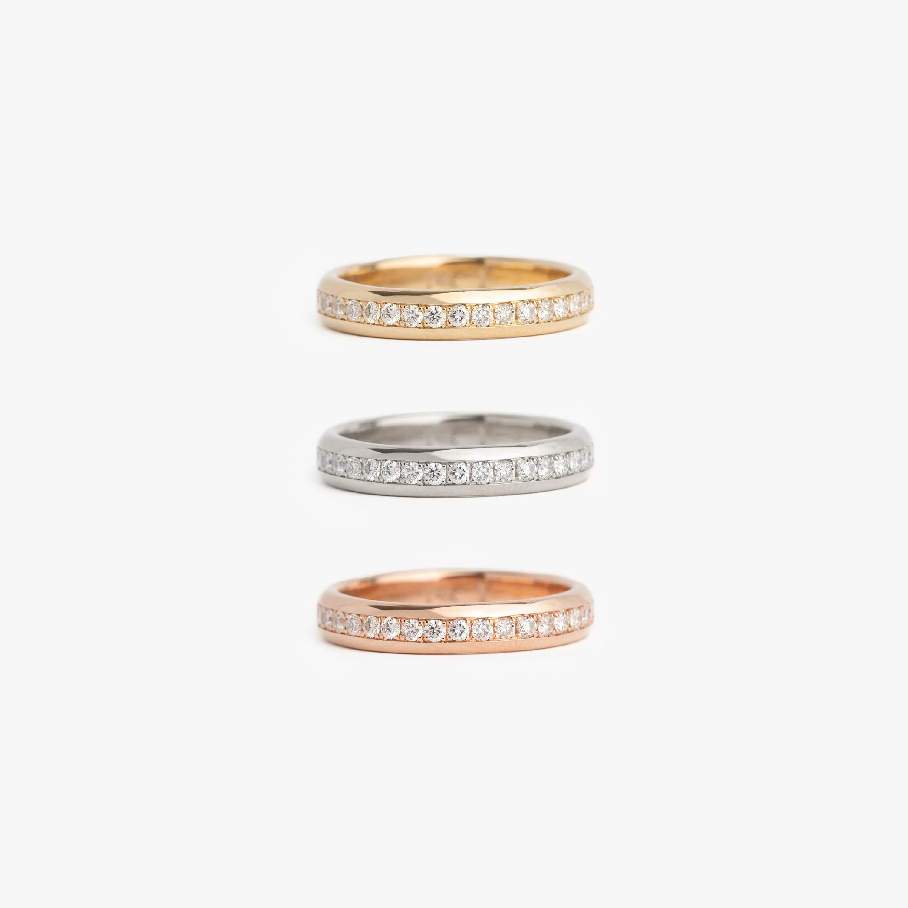 The Thick Pavé Band is solid 14k gold with diamond accents. The most beautiful addition to a ring stack or to wear solo. We matched the design to our popular bangle styles to give you solid, durable and sparkly diamond eternity bands you can wear and enjoy every day.